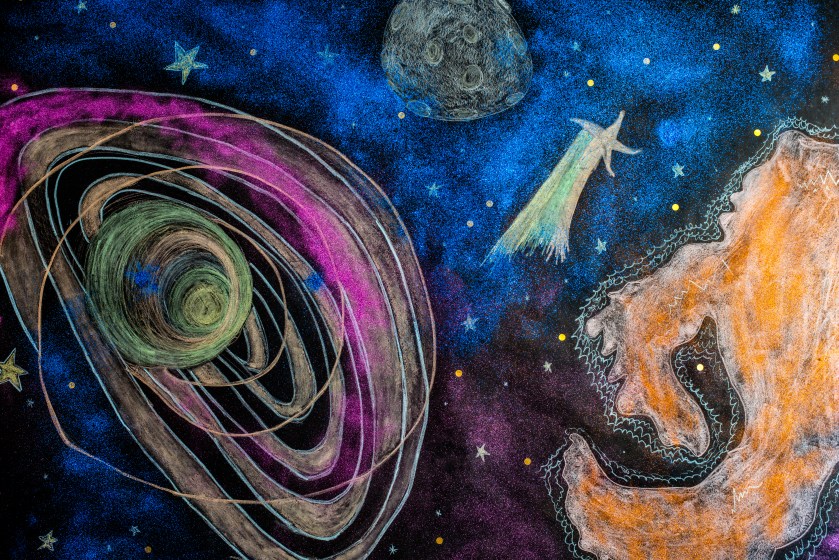 Todo daba vueltas, las estrellas, nosotros, los planetas, adentro y afuera. Las estrellas fugaces amenazaban con chocar contra nosotros o entre ellas; lo mismo los asteroides, las lunas, el mismo cosmos, los agujeros negros, nosotros, todo se movía, todo giraba, todo circulaba, afuera y adentro, afuera y adentro; yo, nosotros, los planetas, las estrellas, alrededor, en círculos, afuera y adentro, afuera y adentro.